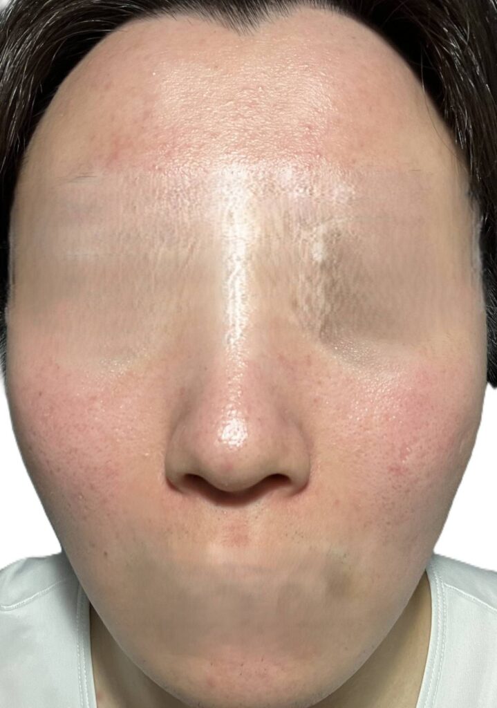 軽度なダウンタイムは、顔全体がやや赤くなる程度になります。(部分的に赤みが強い箇所あり)