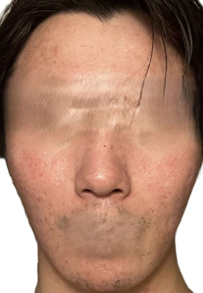 治療した跡が全体的に目立たなくなってきましたタイミングです。一番赤みがひどかった頬やおでこの赤みもほぼ目立たなくなっています。
