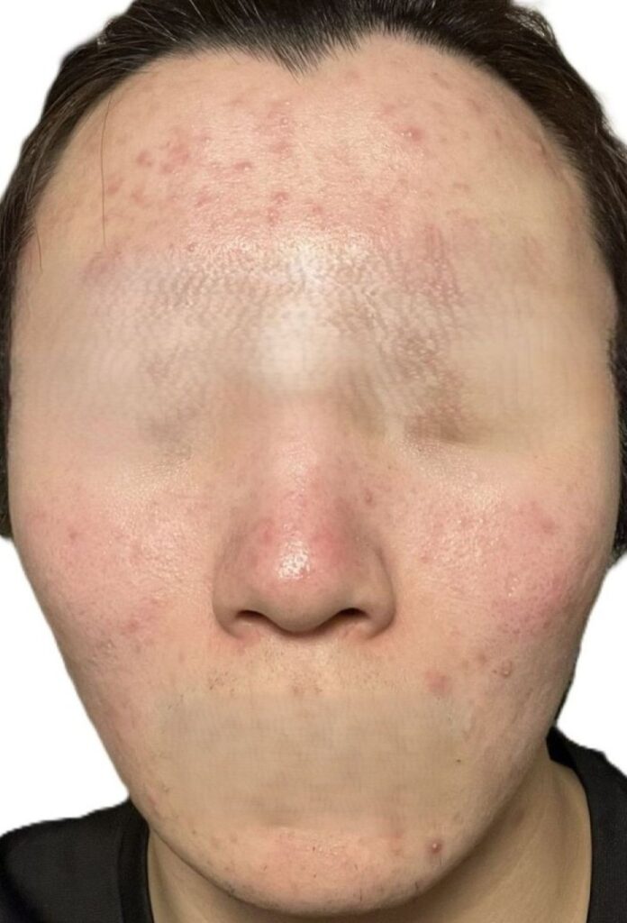 しかし全体的にニキビができやすい肌は治っておらず、おでこや頬に赤・白ニキビができている状態です。